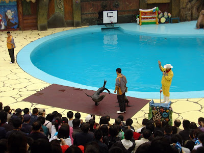 Par contre, nos visites culturelles ne se sont pas arrêtées au musée, nous avons osé nous rendre au parc océan. On n’a pas regretté, on s’est bien marré entre les spectacles animaliers, l’aquarium et les chinois qui veulent faire des photos avec nous.