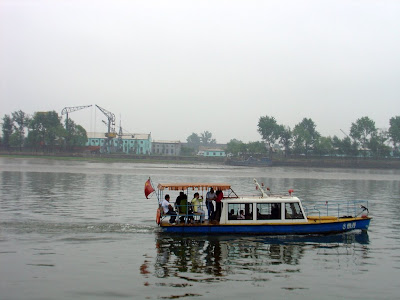 Après un vrai petit déjeuner de roi, ou le buffet proposé des dizaines de plats différents aussi bien européens que chinois nous voilà repartis dans notre minibus en direction du fleuve Yalu pour une croisière charmante entre Chine et Corée.