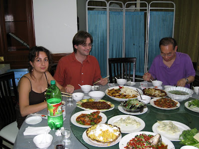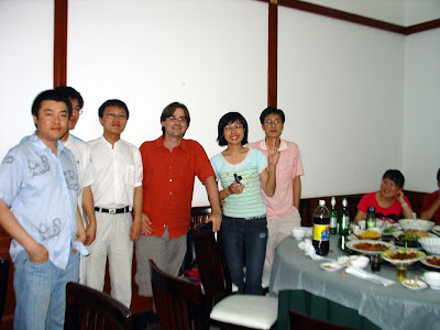 Ensuite un retour en ville pour célébrer une dernières fois tous ensemble un bon repas. Le resto fut cette fois très bon, particulièrement les morceaux de porc frit dans une chapelure. On a une dernière fois portée quelque poste, où le représentant de l'université a encore eu son heure de gloire en enfilant de trois vers cul sec. Le resto aussi nous a servi quelques coquillages des plus étranges que même les Chinois de champs de Changchun terrien par excellence n'avaient pas l'habitude de consommer.