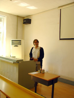 Ensuite voici ma classe où j'enseigne l'archéologie et un de mes étudiants.