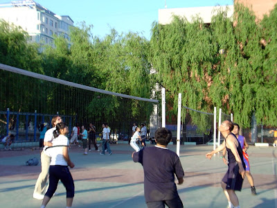 Le mois de juin est aussi celui du match de volley entre les trois composantes de mon institut. Dans une série de trois matchs, les assyriologues, les égyptologues et les classiques s'affrontent pour remporter une paire de chaussettes et une serviette de bain. Ce tournoi organisé par le directeur de l'institut le professeur Wu (celui qui m'a recruté) est l'occasion pour moi de rencontrer d'autres étudiants de faire un peu de sport, de vieux souvenirs de volley-ball reviennent et de s'amuser un peu.