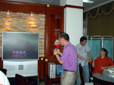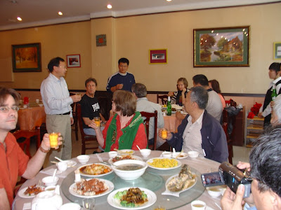 Enfin samedi dernier, il y avait aussi le repas pour clôturer l'année toujours organisée par Mister Wu. Chose visiblement assez fréquente pour l'université chinoise puisque des salons spéciaux au troisième étage de la cantine sont prévus pour accueillir ce genre de "party" comme cela m'a été présenté.