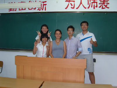 Déjà le mois de juin les vacances qui approchent. Un bon mois et demi de vacances, ça va en faire rêver plus d'un. Ici l'atmosphère est maintenant plus détendue, le temps est au beau fixe (il fait même très chaud) et les étudiants bien qu'il prépare les examens sont de plus en plus décontractés. Alors avant de partir voyager dans le sud de la Chine quelques photos de nos étudiants.