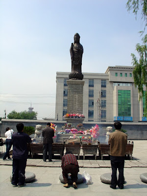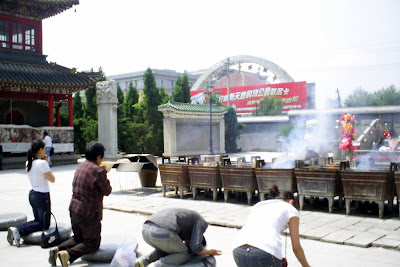 Bien qu'en pays communistes certaines religions sont tolérées, il y aurait même à Changchun une église catholique. Et peut-être parce que c'est « l'opium du peuple » et que l'opium fut un temps ici très apprécié que les pratiques religieuses ont l'air de bien se porter en Chine même si la plupart des gens se disent athées. C’est assez stupéfiant de voir que mes étudiants n’ont aucune idée de ce que peut être les religions. A-t-elle point qu’ils ne peuvent ni formuler de critique ou de louange à propos de ce domaines.