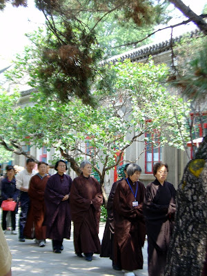 En tout cas notre visite fut très agréable car le lieu est calme avec de nombreux arbres et une architecture typique d'un temple bouddhiste. D'après mes lectures, ce n'est pas un temple très ancien car il fut détruit pendant la révolution culturelle mais peut-être que certaines parties ont pu être sauvées car elles paraissent parfois anciennes. Quoi qu'il en soit, l'endroit est reposant comparé à la fureur des rues de Changchun et de leur taxi klaxonnant à tout-va.